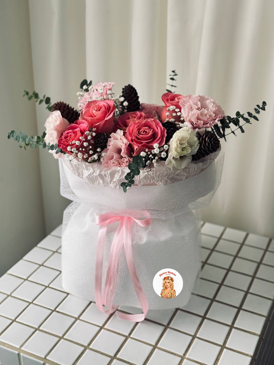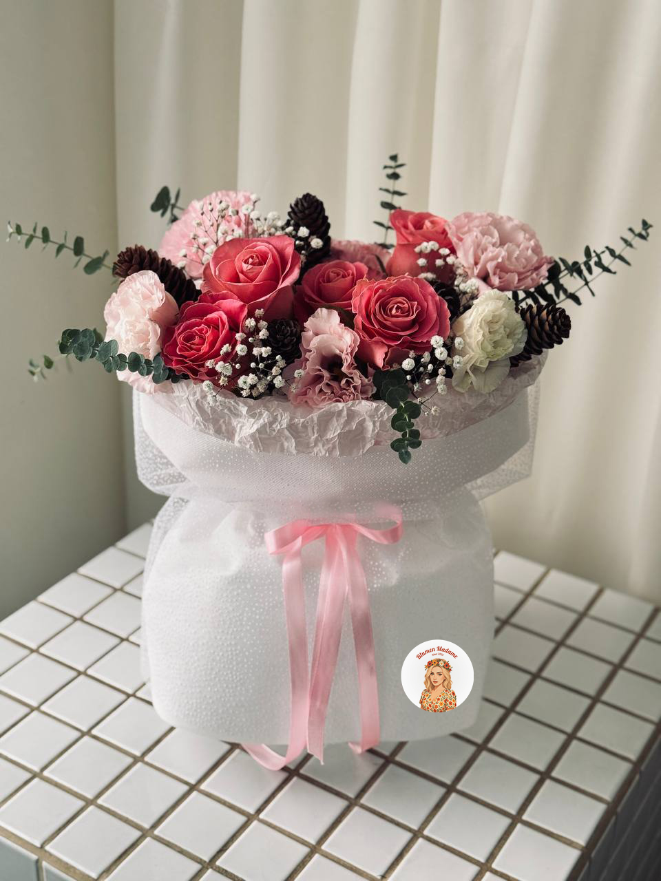 Eukalyptus 4 Und einige Trockenblumen zur Dekoration (Kiefer)